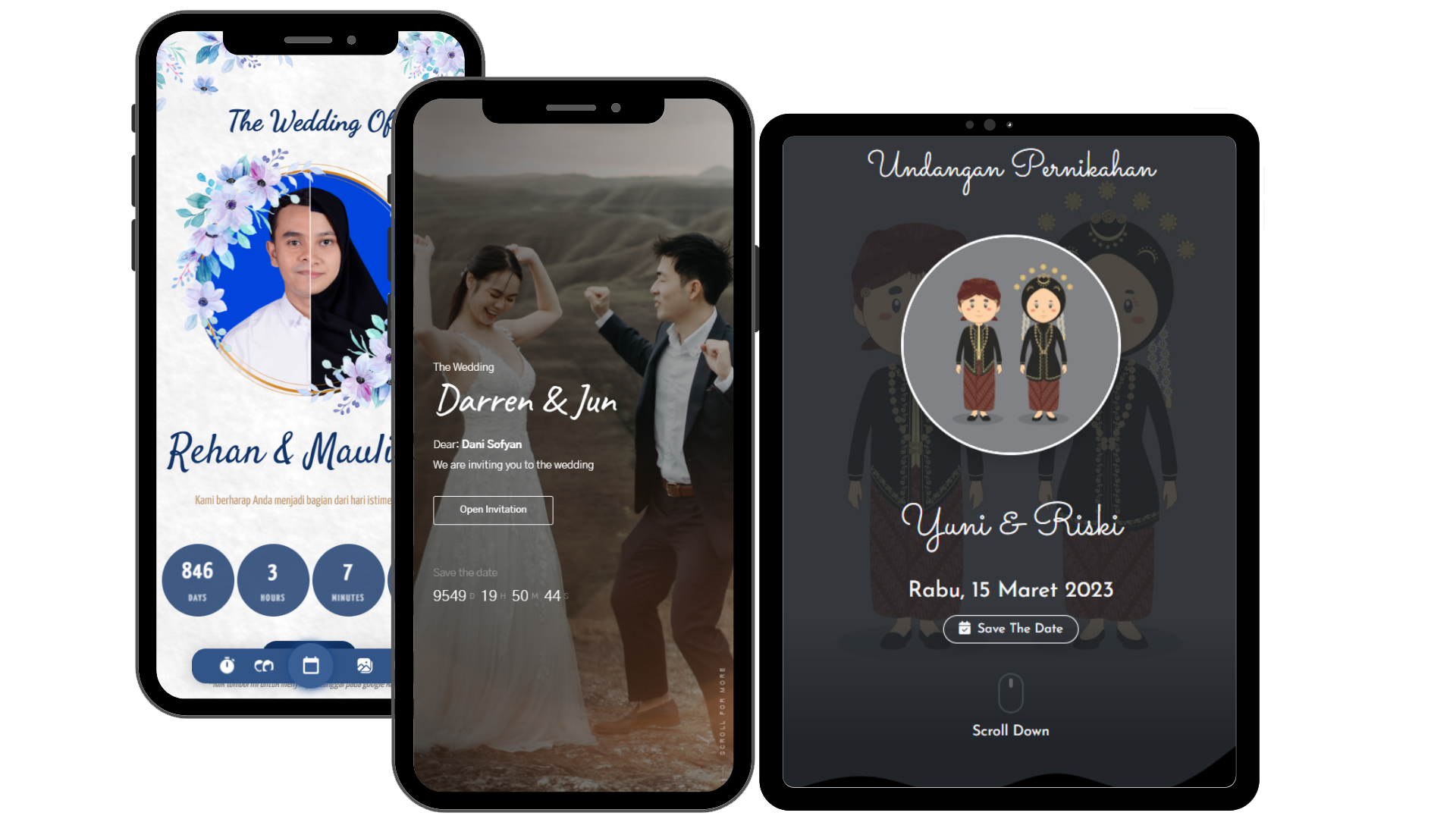 Kami juga menyediakan beragam pilihan template undangan yang bisa disesuaikan dengan tema acara Anda. Mulai dari desain klasik hingga modern, dari formal hingga santai, Anda bisa memilih template yang paling cocok untuk pernikahan Anda. Semua template kami dirancang dengan detail dan sentuhan profesional, siap digunakan dalam hitungan jam.